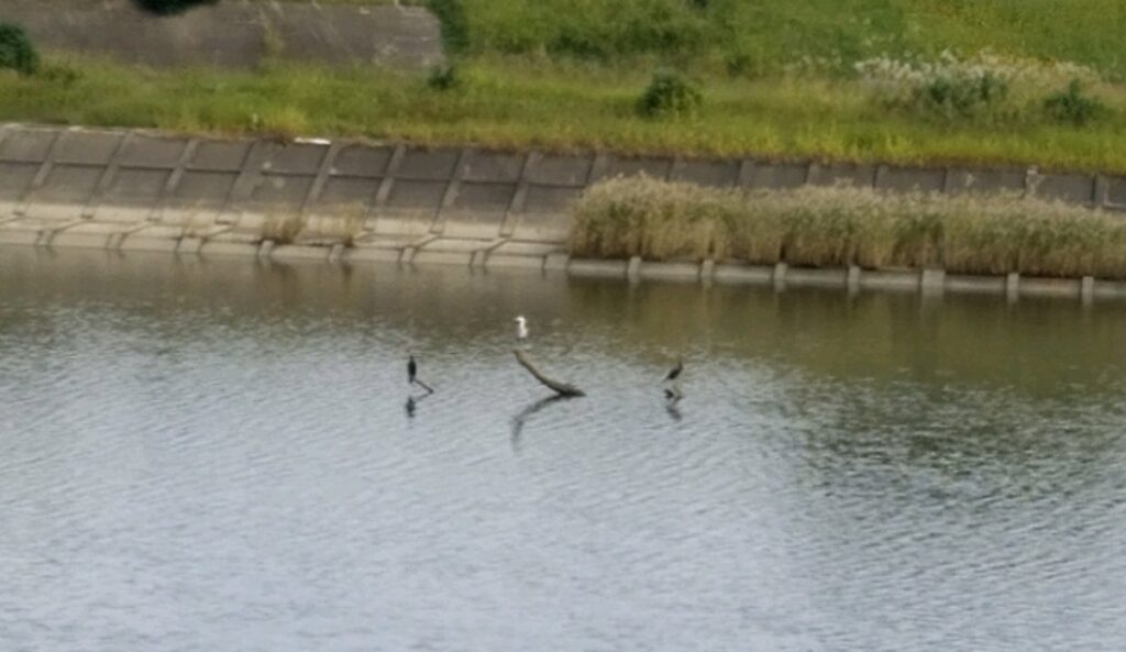 10月になっても夏のような日々が多かったのですが、中旬辺りから季節が一気に進み、最近は朝起きて寒く感じるようになってきました。まさに秋の季節が短くなり、すぐそこに冬の足音が迫ってきているようですね。散歩コースも夏バージョンから通常のコースに変えましたが、コースで利用する豊川の遊歩道でも冬の期間水面を賑やかにしてくれる水鳥が徐々に増えてきた印象です。今朝はちょっと面白いシーンを見かけたのでスマホで撮影しました。川に流れついた大きな枯れ枝が少し水面から顔を出しているのですが、鳥たちの格好の日光浴のポイントとなっています。今日は、三羽の鳥が枝の先端に止まっていますが、まるでオリンピックの表彰台のように見えました。ゴールドメダルは真ん中の白鷺さん、両隣が銀メダルと銅メダルの黒いカワウさんたちです。ついほっこりして写真を撮ってしまいました。