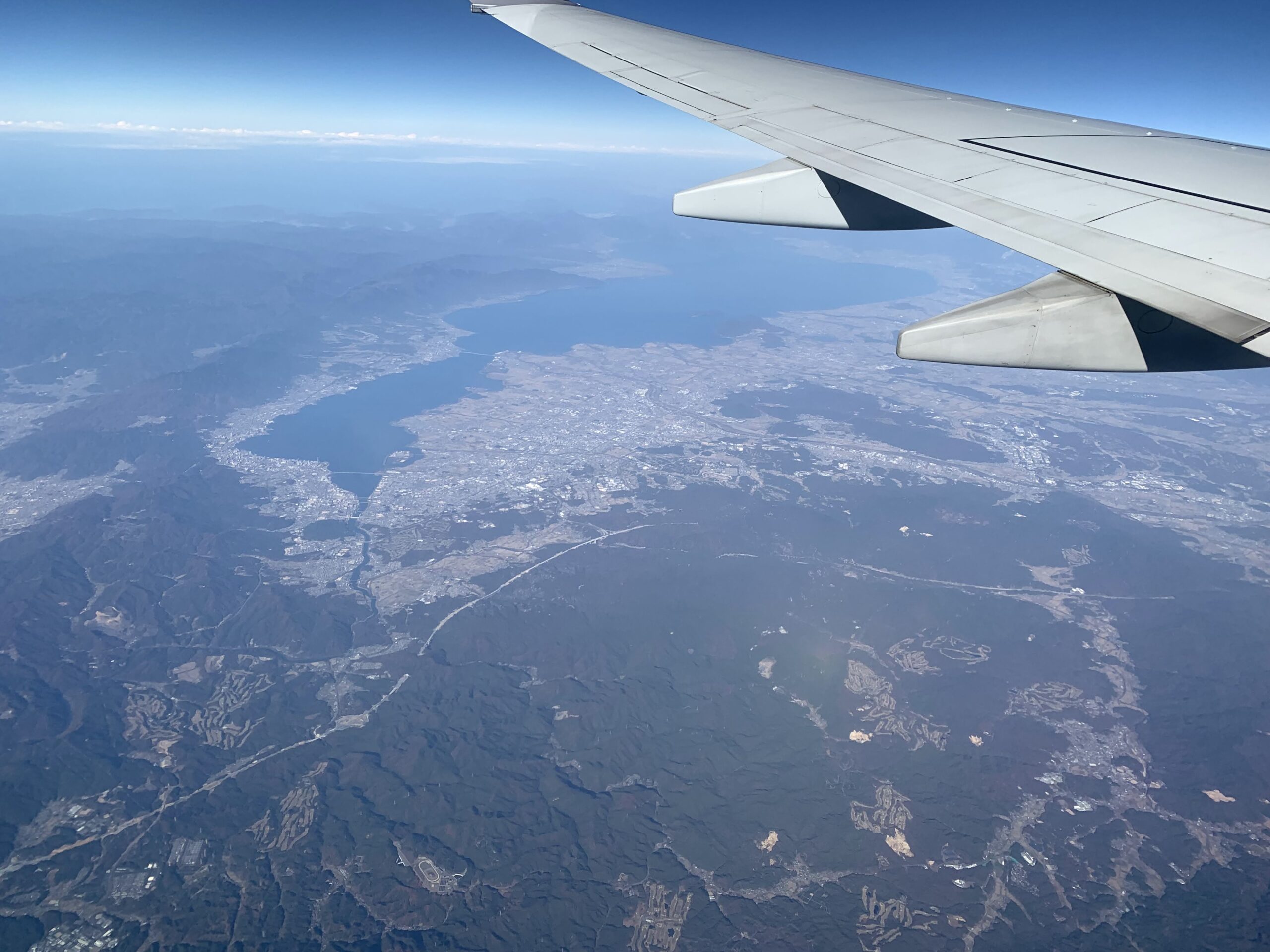 岡山空港からの帰り便,JAL236から見た景色です。今日は快晴とまではいかなくても晴れ,期待できます。