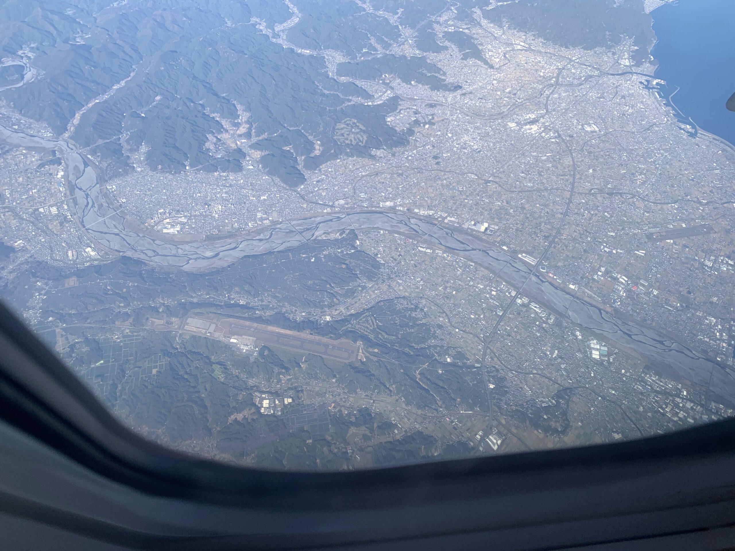 しばらく飛ぶと伊勢湾。伊勢湾というと中部国際空港です。