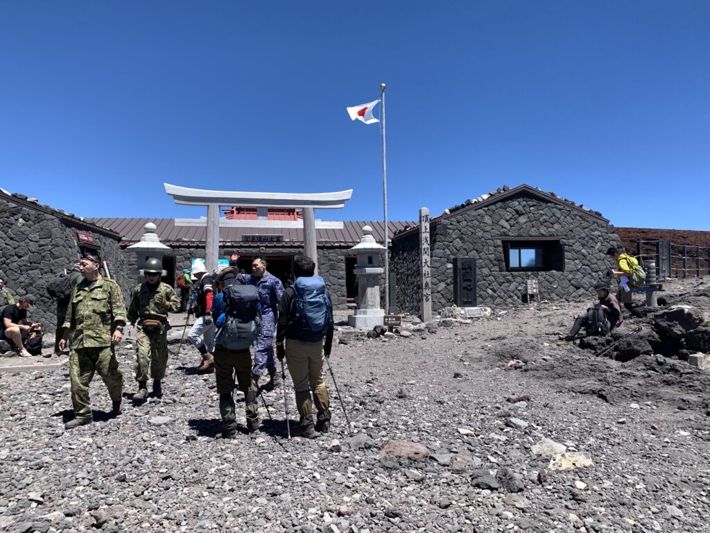 山小屋は東斜面にあるので,次の日朝4時過ぎから見れる日の出の様子を楽しみ,その後,朝食をとってから富士山山頂に向けて出発します。吉田口・須走口頂上にある久須志くすし神社 (東北奥宮 ,奥宮の末社)で「高齢者登拝者」の署名をしてから,お鉢巡りで時計と反対まわりで剣ヶ峰に向かいます。