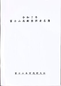 本日,富士山本宮浅間大社より令和7年,2025年の富士山高齢登拝者名簿が届きました。名簿の中に自分の名前を見つけだすのが楽しみです。