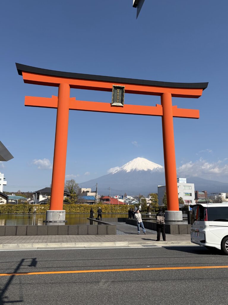 富士宮本宮浅間大社の富士は「冨士」です。「富士」と「冨士」との違いは,ウ冠かワ冠です。普通は「富士」が使われ,正式な表記です。冨士は「ワ冠(山頂)」を神域とし,人が立ち入れない「禁足地」としての畏敬の念を表す意味で使われます。冠の「ウ」の上の「´」は人なんですね。