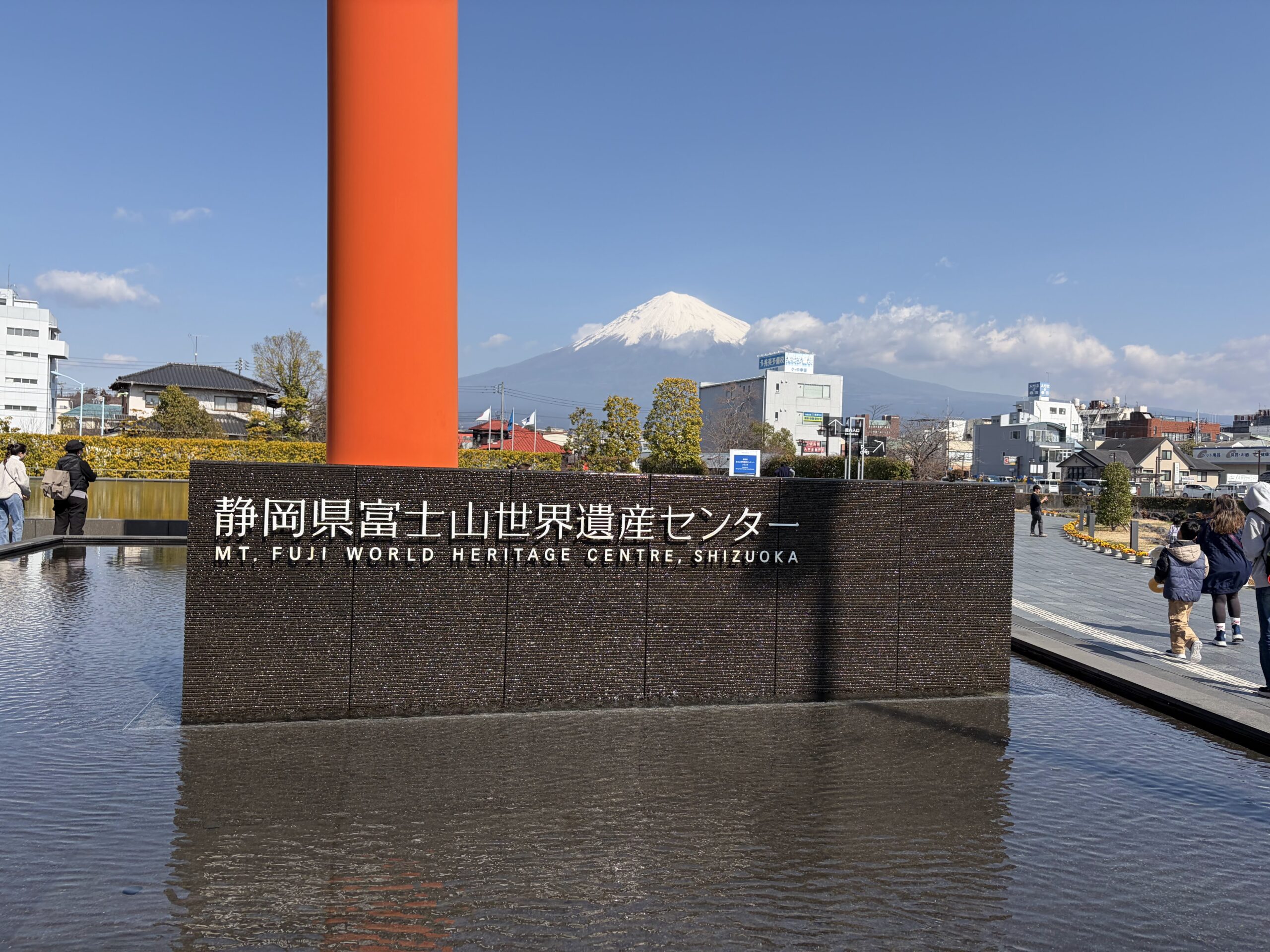 気を取り直して,富士宮ふじのみやの富士山世界遺産センターまできました。ここからの富士は,富士山に雲がかかっているのは南側,多少の雲が流れてきますが,先ほどとはかなり違った状態です。